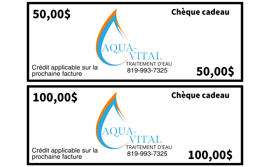 Lorsque vous référez Aqua-Vital à une personne de votre entourage, famille, collègue, ami ou pour votre 2ème résidence, vous bénéficiez d’un chèque cadeau applicable sur votre prochaine facture. Les montants sont ajustés selon les travaux effectués.